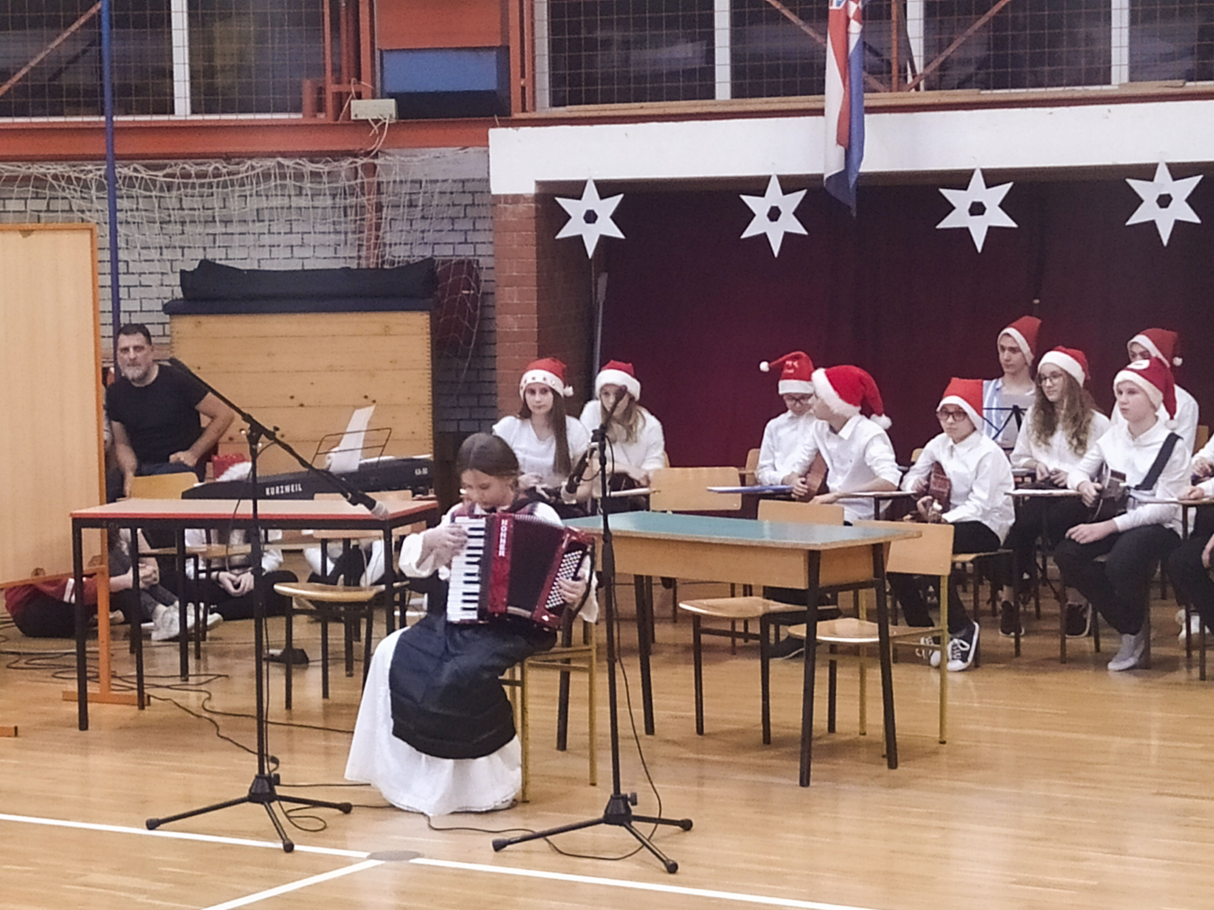 Za glazbeni dio programa pobrinula se učiteljica Stella Cimerman koja je s Dječjim zborom i Dječjim tamburaškim orkestrom uvježbala božićne pjesme, a na kraju priredbe pridružili su im se i učitelji škole te tako svim uzvanicima zaželjeli sretne blagdane.