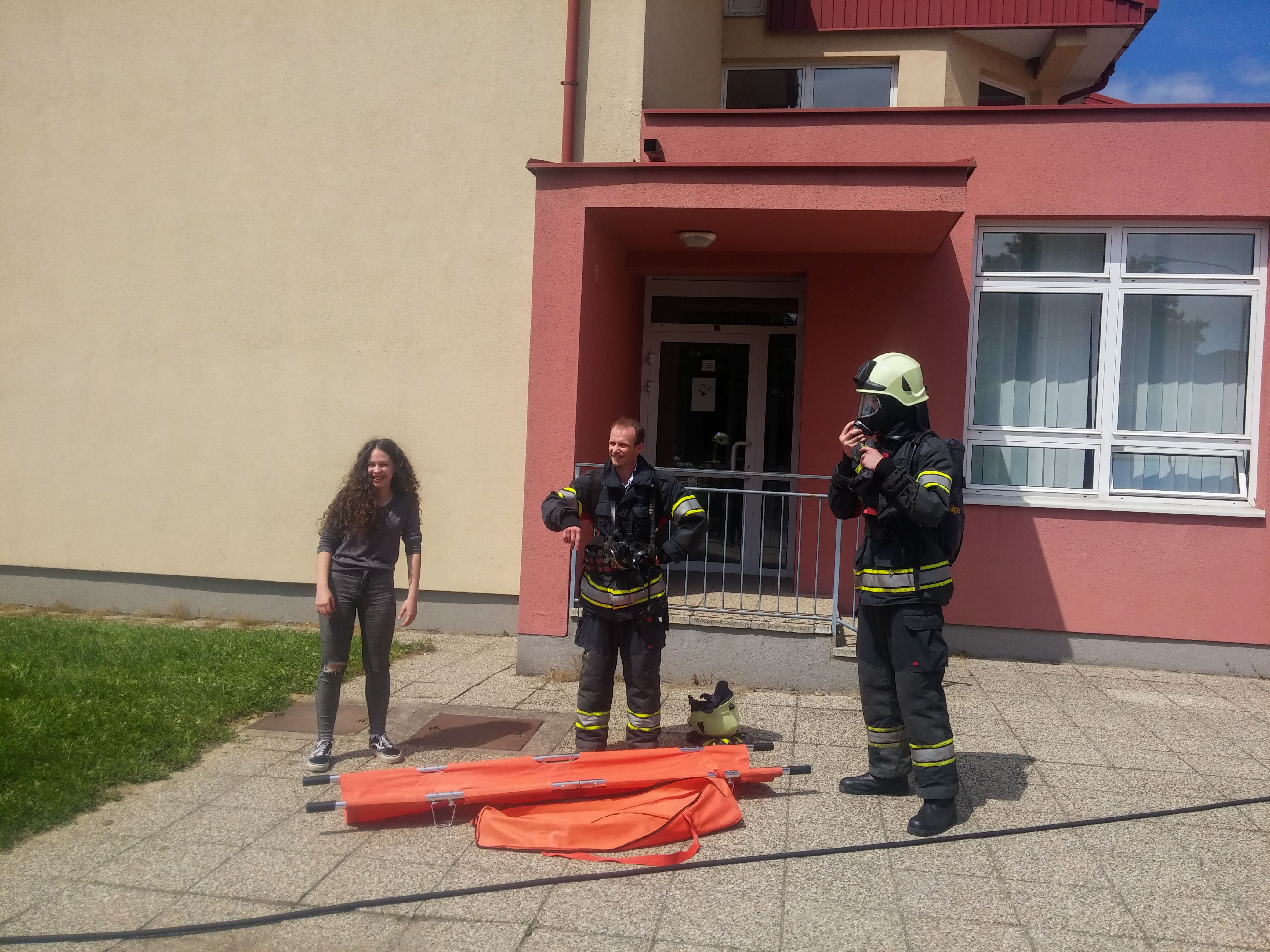 U drugom dijelu aktivnosti izvršili su demonstraciju gašenja početnih požara aparatima za suho gašenje, gašenje razbuktale vatre pjenom i vodom. Također, prezentiratirali su gašenje otvorenog plamena pomoću «S» aparata, dobivanjem pjene pomoću brentača, kao i dobivanjem pjene pomoću posebnih mlaznica. Cilj je te preznetacije upoznati i naučiti rukovati učitelje i djecu s radom aparata za početno gašenje požara. Veliko je veselje među učenicima nižih razreda izazvala vježba s brentačama jer su sami naučili kako rukovati njima. Viši su razredi gasili vatru pomoću vatrogasnih aparata, a pridružili su im se i učitelji. Oduševljenje nisu mogli sakriti ni učenici osmih razreda koji su na kraju dobili priliku dodatno razgledati vatrogasna vozila i opremu te voziti se u košari autoljestve. Nakon završetka vježbe zapovjednik intervencije postrojio je interventnu jedinicu i predao izvješće ravnateljici o izvršenoj intervenciji gašenja požara i spašavanja ozlijeđenih u Osnovnoj školi Antuna i Ivana Kukuljevića, Varaždinske Toplice.