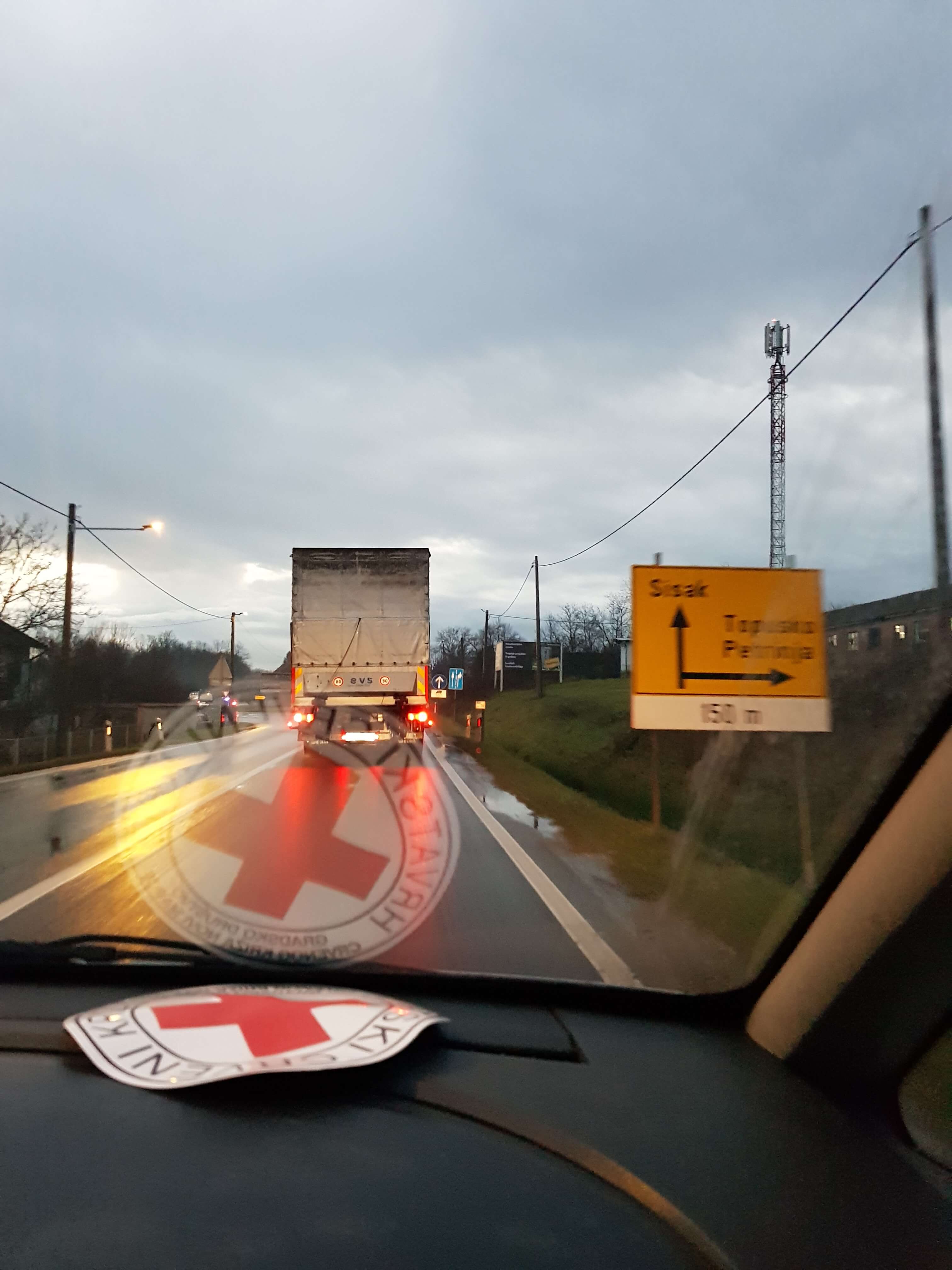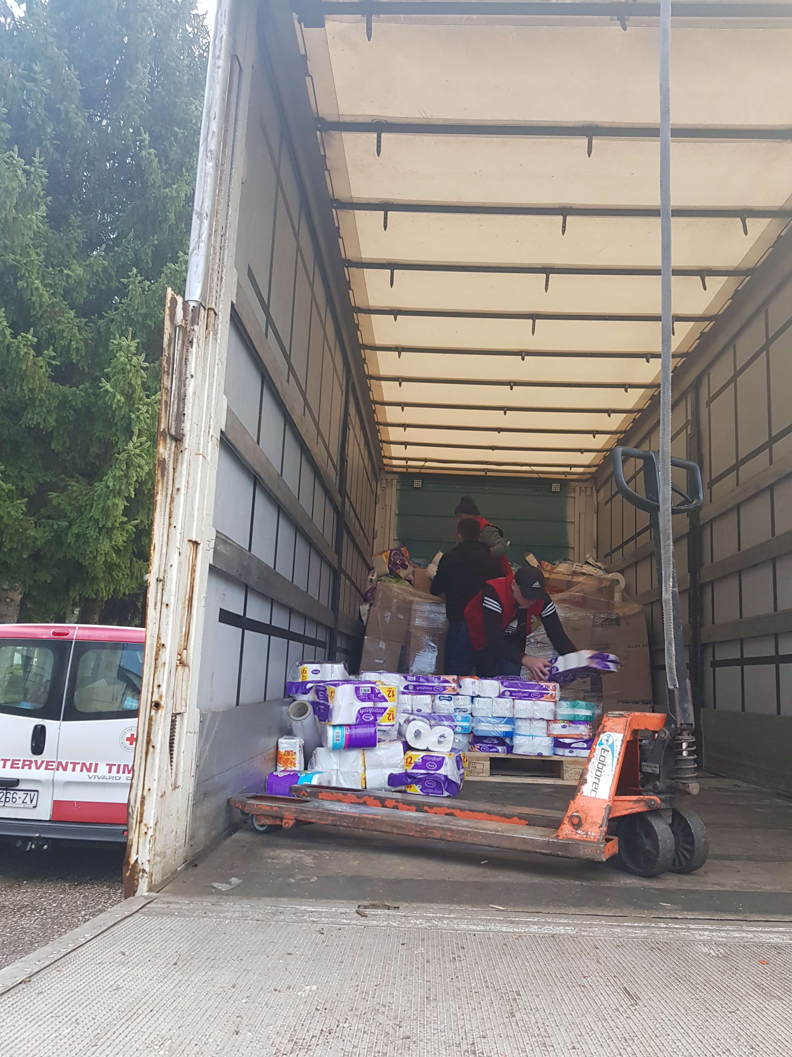 Prikupljenu smo pomoć u nedjelju 03. siječnja 2021. organiziranim prijevozom dostavili u skladište HCK u Sisku odakle će u daljnju distribuciju po terenu i za potrebe prehrane osoba smještenih u prihvatnim centrima.