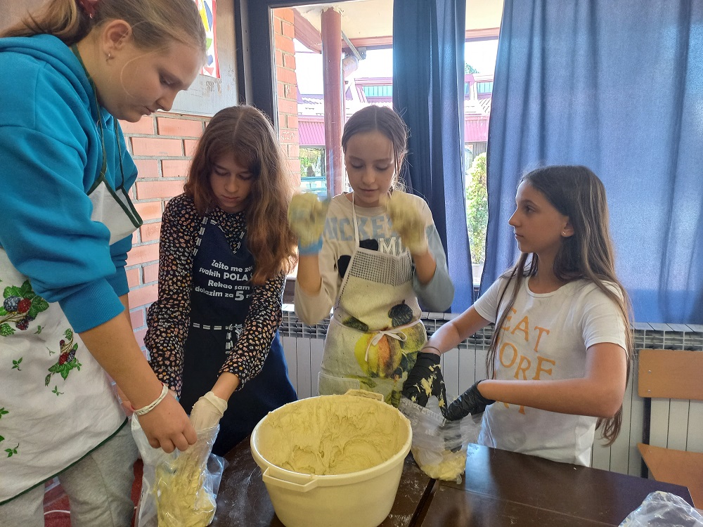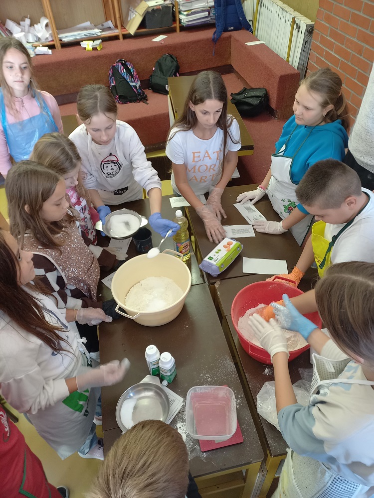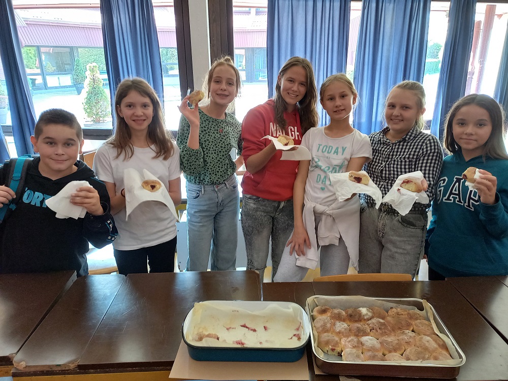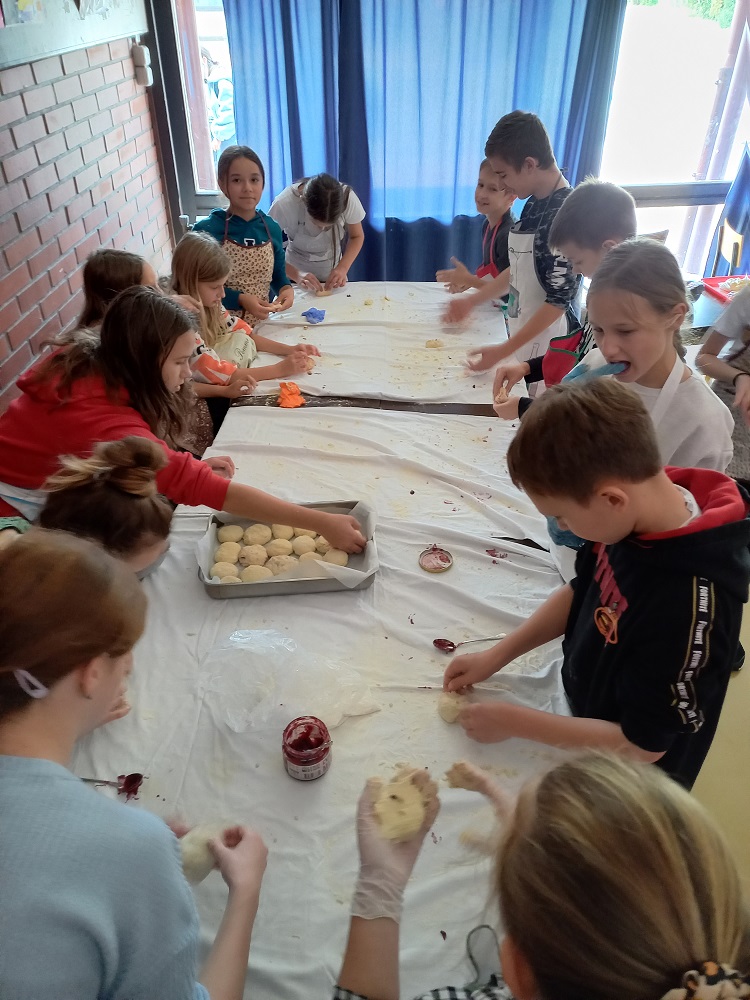 Polaznici izvannastavne aktivnosti Domaćinstvo učili su o namirnicama koje su potrebne za izradu kruha i dizanog tijesta. Zamijesili su dizano tijesto i napravili buhtle koje su punili domaćim pekmezom od šljiva, a pripremili su ga kod kuće i donijeli. Kuharice su ih ispekle u školskoj kuhinji, a učenici su u slast pojeli. Nisu zaboravili ni ostale djelatnike škole. U njima su uživali ravnateljica, učitelji i ostali djelatnici škole.