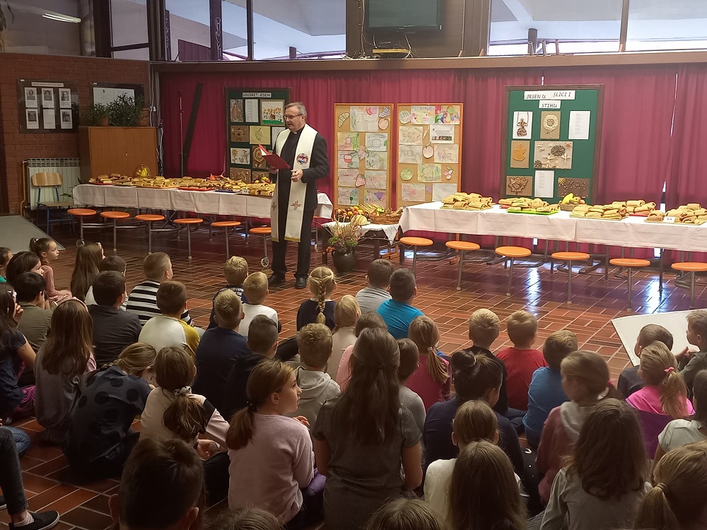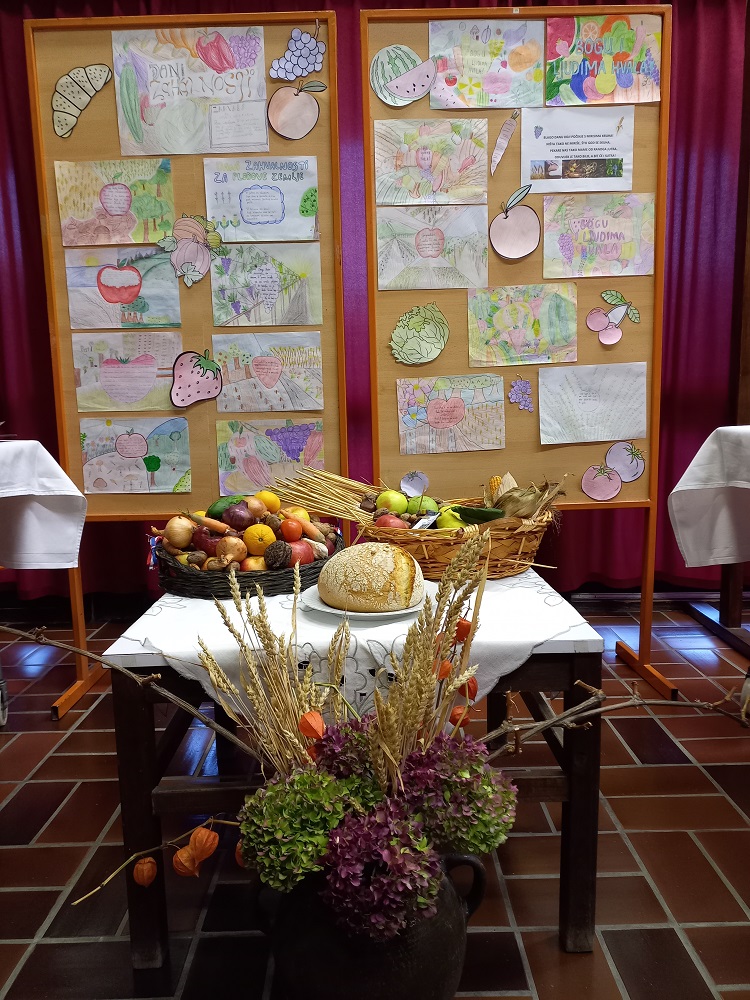 U srijedu, 19.10.2022. učenici i djelatnici škole predvođeni župnikom Stjepanom Mostečakom izrazili su molitvom i blagoslovom svoju zahvalnost Bogu i ljudima na primljenim darovima. Nakon blagoslova učenici su uživali u blagovanju peciva sa slatkim punjenjem. Pripremljena je i prigodna prodaja pekmeza od aronije iz školskog voćnjaka i mirisnih plodova dunje.